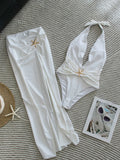 Designed for women who love sophistication, this collection combines a high-slit skirt cover-up, sexy halter bikini, and elegant one-piece options — perfect for making every beach or pool moment unforgettable.
