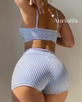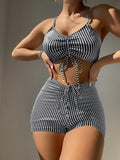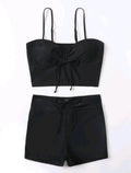 With adjustable drawstring shorts and a high-waist design, it enhances your curves while keeping you comfortable and stylish for every beach or pool moment.