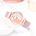 The watch, with its elegant design and soft hues, pairs beautifully with the bracelets and ring — forming a look that radiates femininity, style, and confidence.